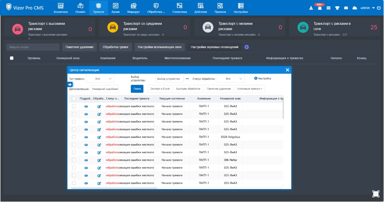 - Обработка тревог ADAS, DSM