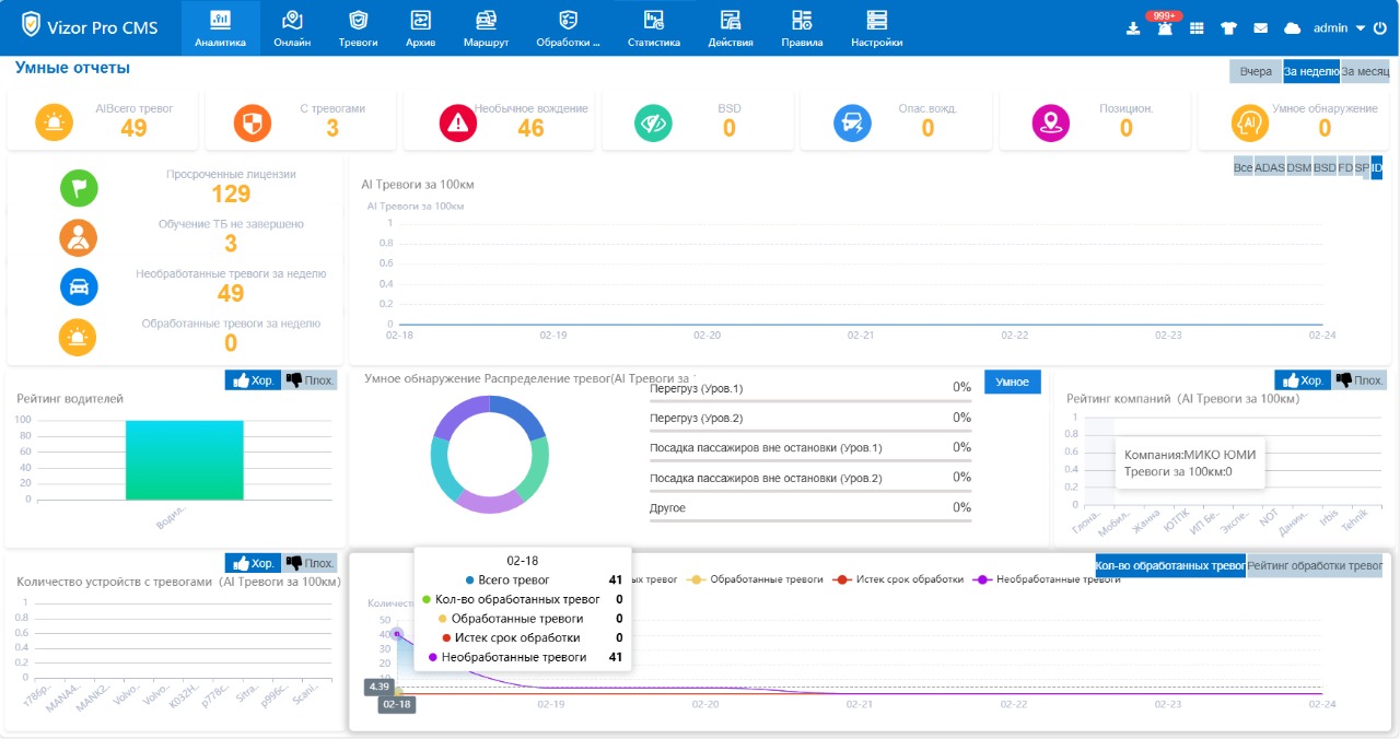 + Аналитика тревог ADAS, DSM